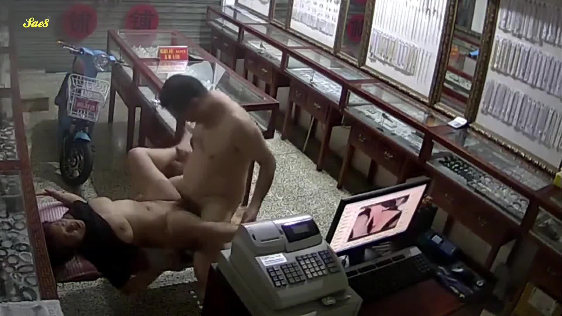 珠宝店女职员关店后看小电影饥渴难耐老板趁机拿下