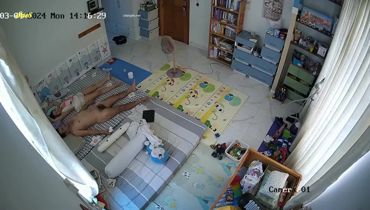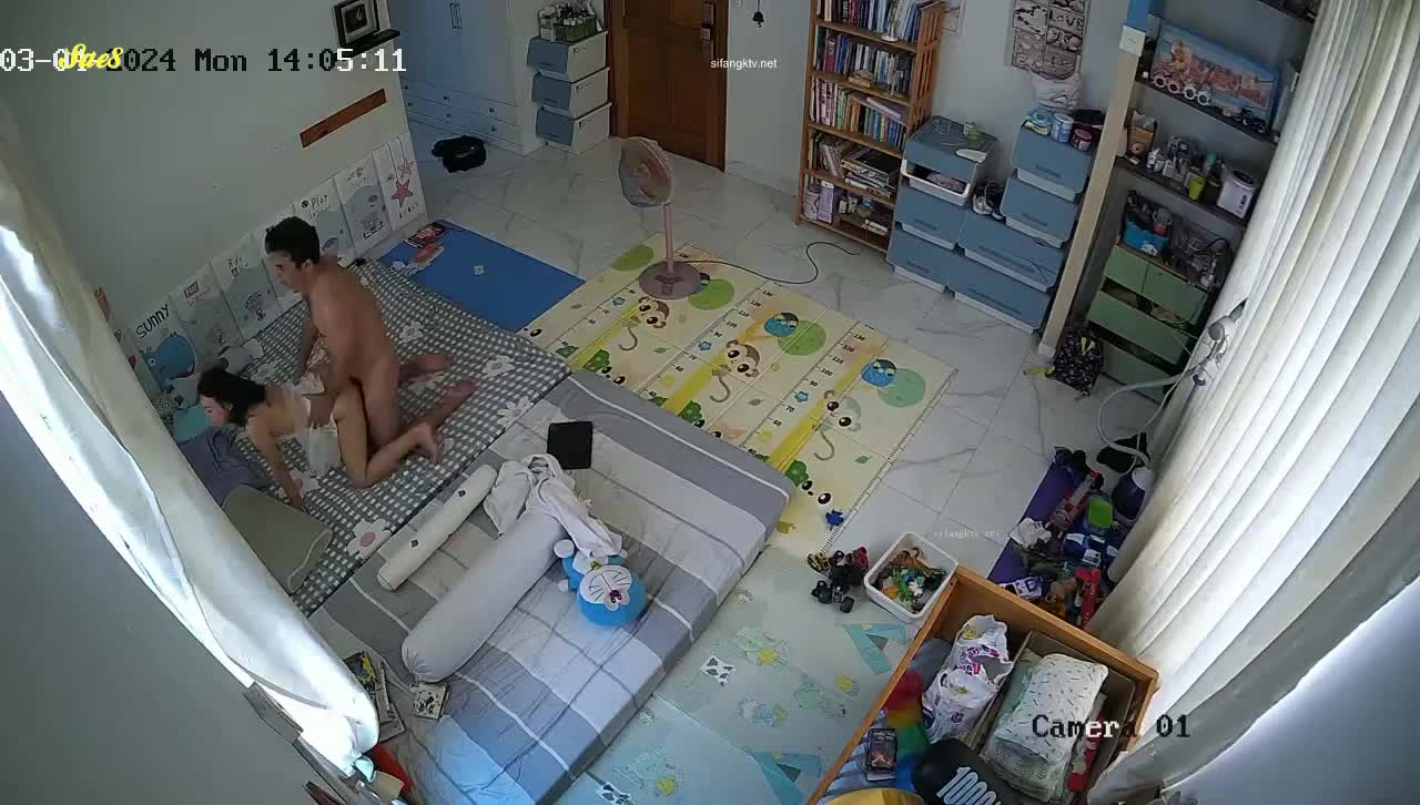 家庭摄像头把孩子送去幼儿园后夫妻肆无忌惮尽情的爱爱。